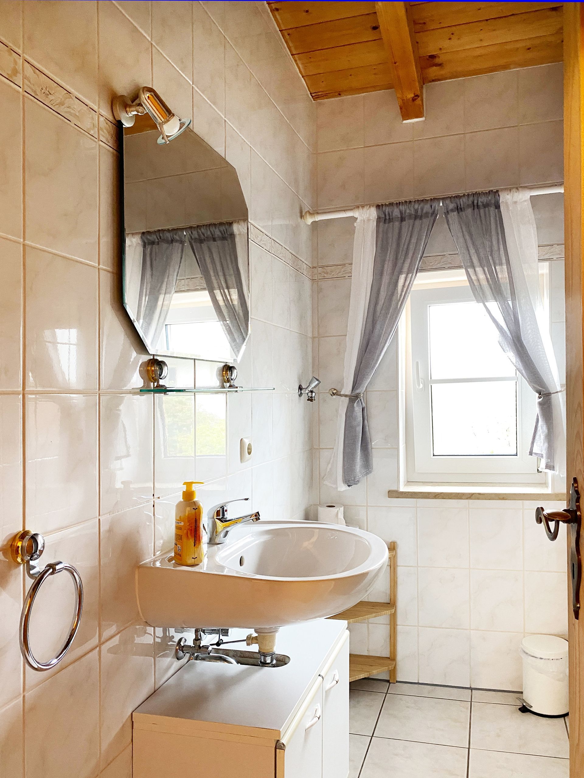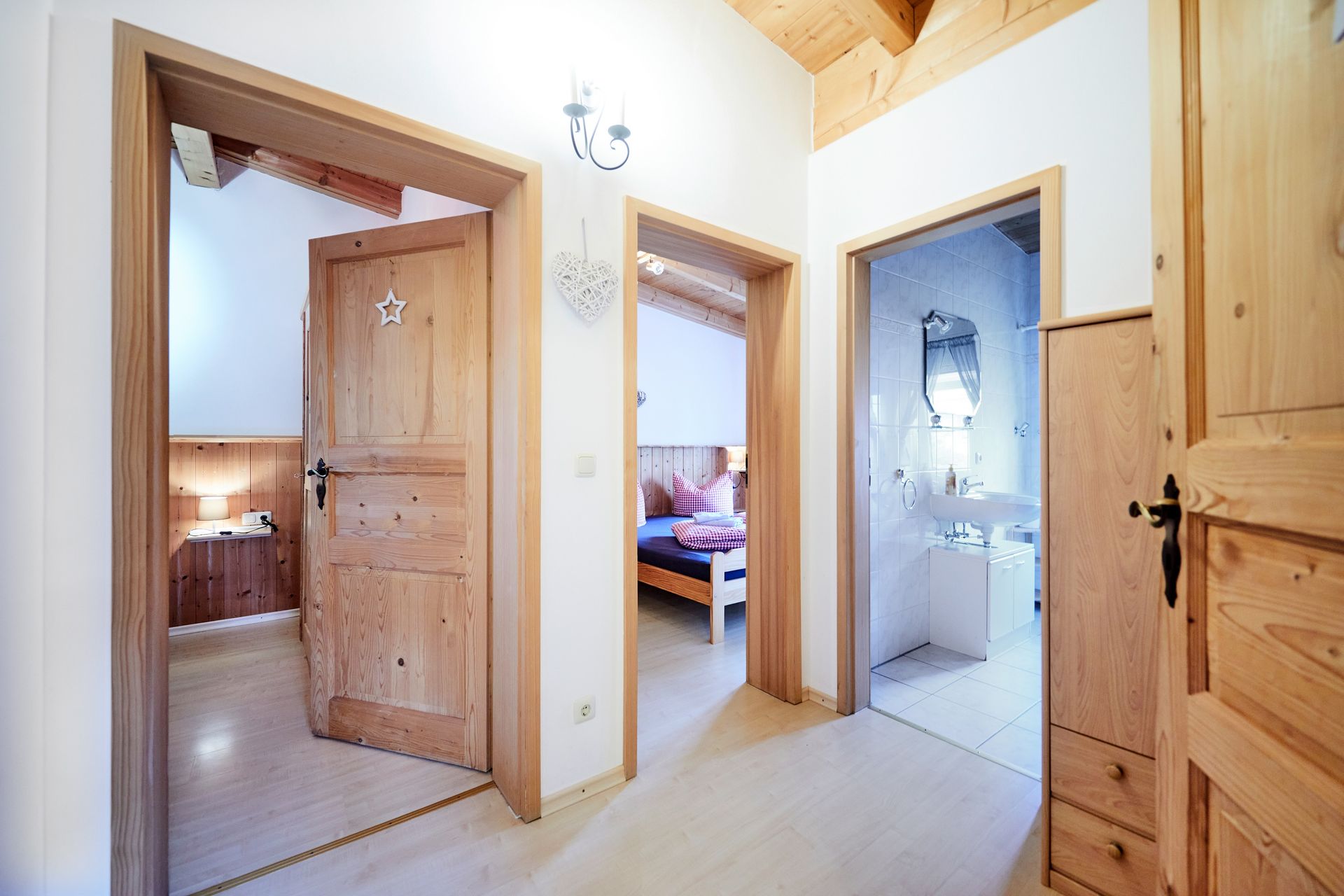 Die Ferienwohnung verfügt über zwei separate Schlafzimmer für erholsamen Schlaf. Das moderne Badezimmer bietet alle Annehmlichkeiten für deine Erholung nach einem aktiven Tag im Allgäu.