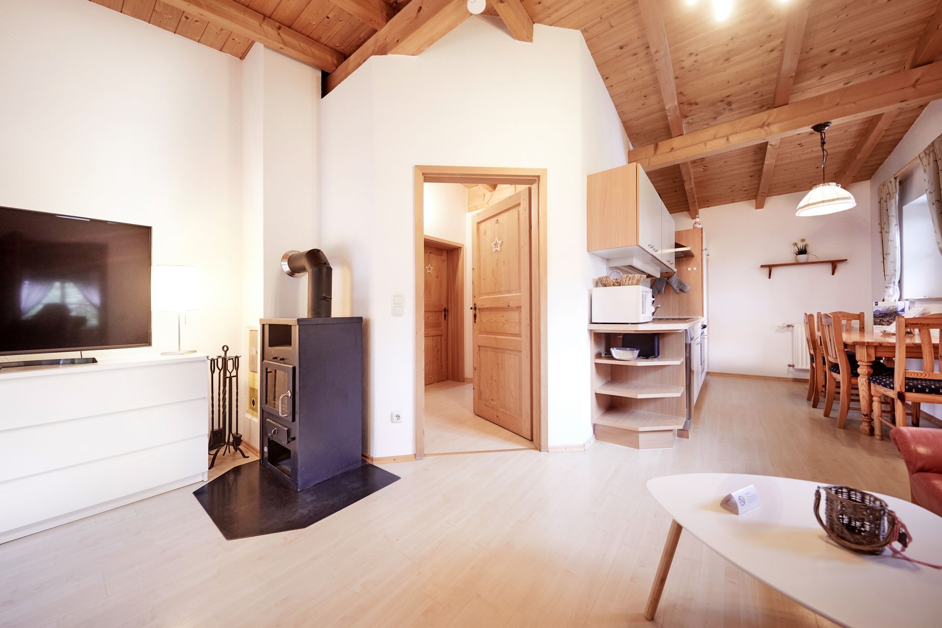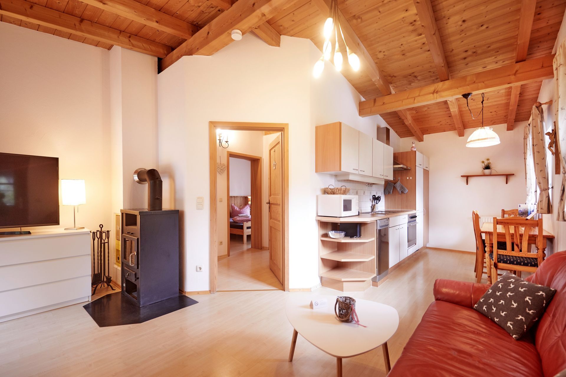 Entspanne dich nach einem Tag voller Abenteuer in den Bergen im großzügigen Wohnzimmer, das mit einem Kamin ausgestattet ist. Die voll ausgestattete Küche lädt dazu ein, köstliche Mahlzeiten zuzubereiten, die du auf der Terrasse genießen kannst, während du die malerische Umgebung des Allgäus bewunderst.