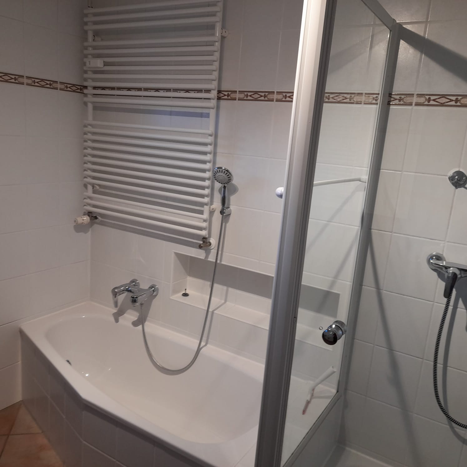 Dies wird durch das große Wannenbad abgerundet. Jede Etage verfügt über je ein WC.
